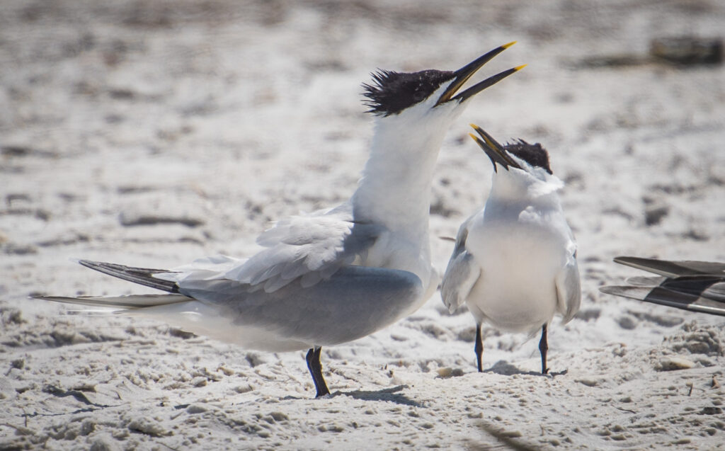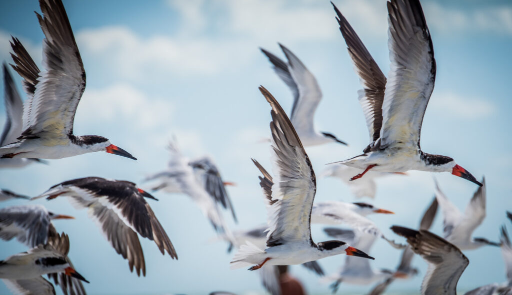 There’s a colony of Black Skimmers that nests on North Lido Beach April-August. It is typically roped off with a volunteer stationed. Definitely worth checking out!
